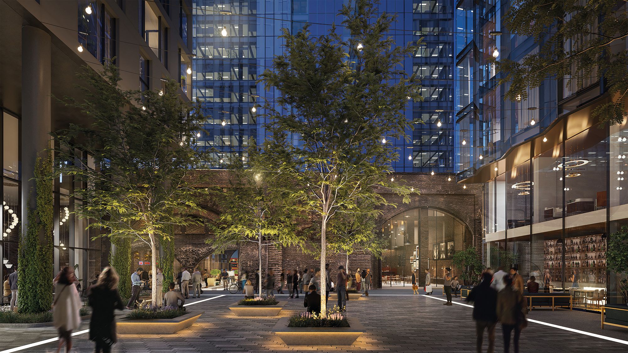 Conceived as a true mixed-use neighbourhood, the development brings together residential, workplace, hospitality, cultural and retail programmes within a cohesive masterplan. A series of buildings are arranged around a network of public spaces, including a central square, landscaped streets and a north–south promenade, creating a vibrant and active urban environment that responds to the character and energy of its surroundings. The restored railway arches play a key role in this, introducing new cultural, retail and public uses that help activate the site and strengthen its relationship to the wider city.