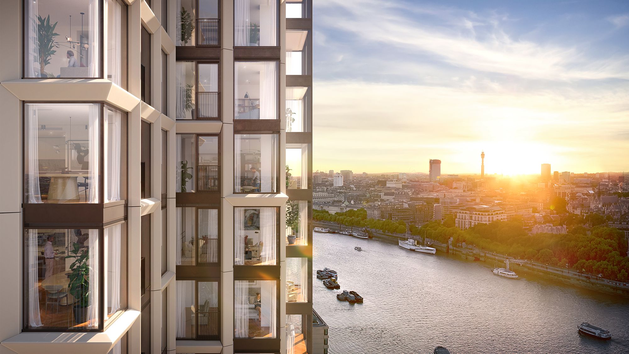 Rising above the River Thames, Opus is shaped by its exceptional position between the city, the river and London’s cultural core. The homes are designed to maximise light, outlook and a strong connection to the wider urban landscape.