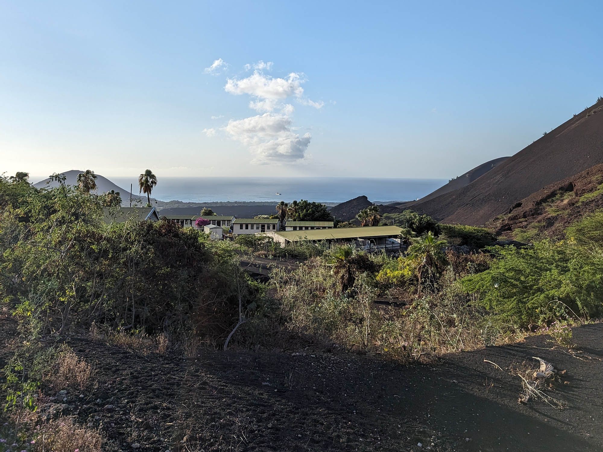 On the ground footage of the housing of Ascension Island.