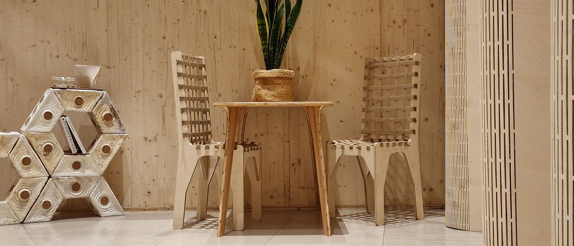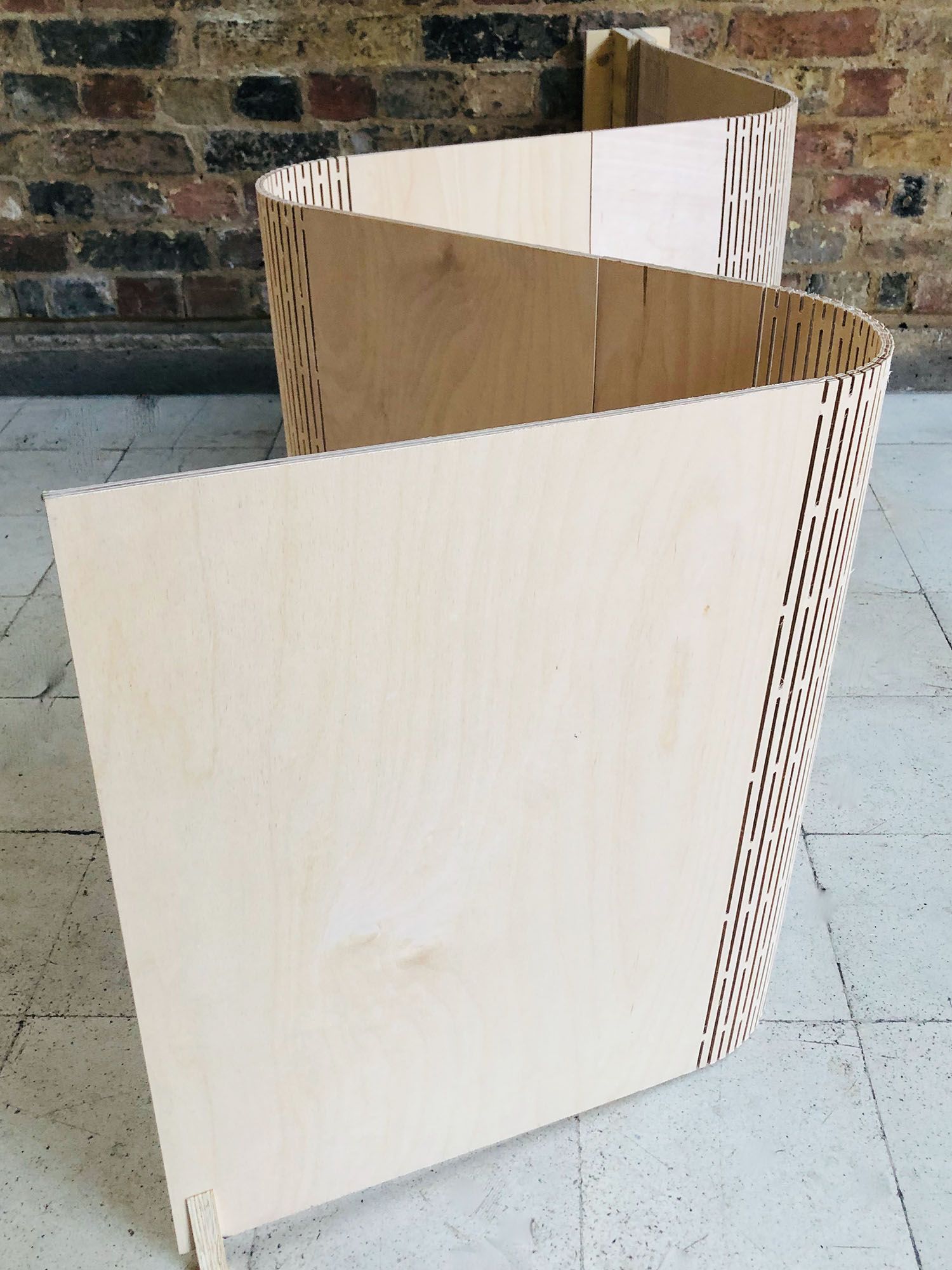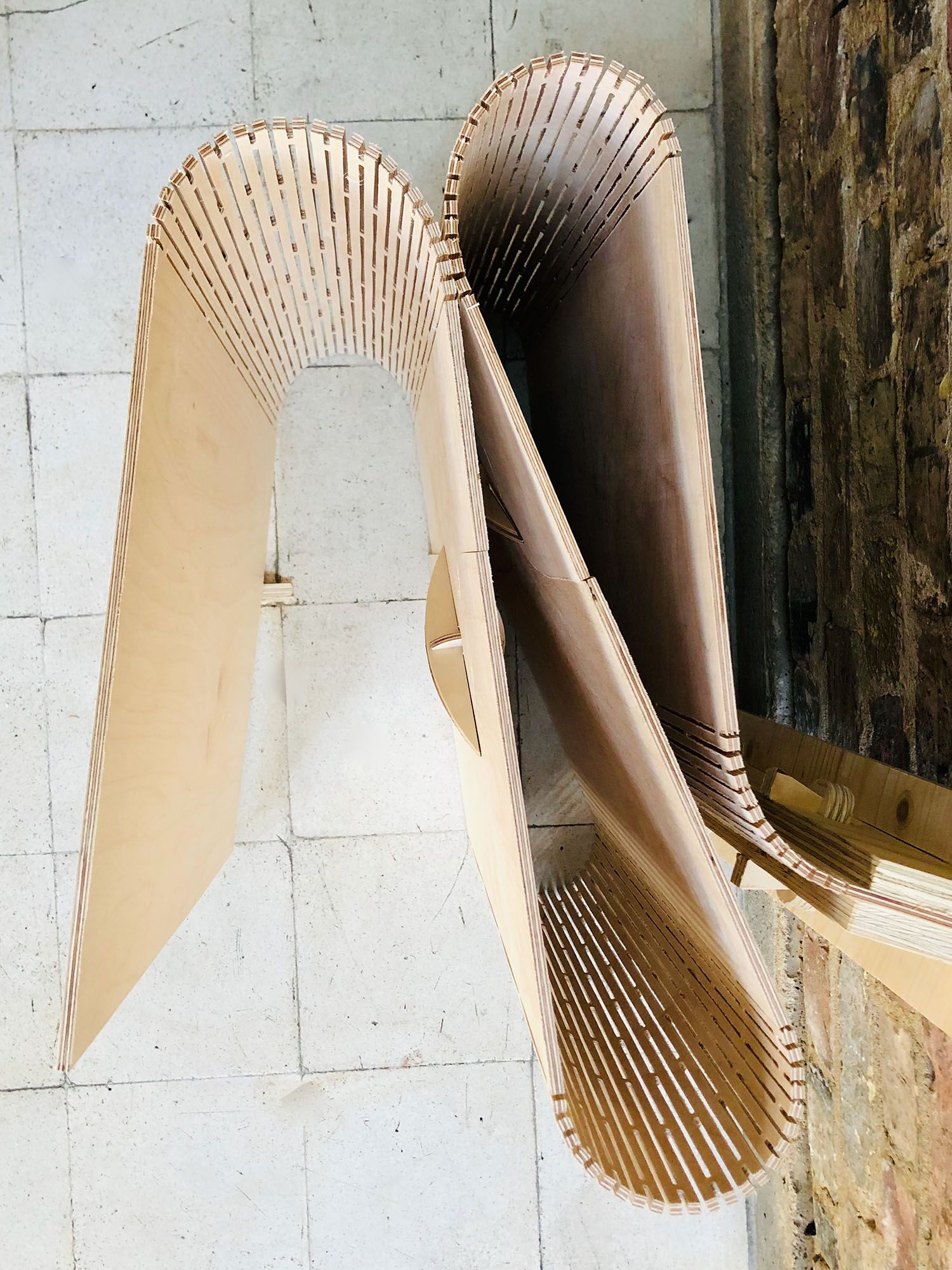 Unfolding (2021) and Ephemeral (2023) were exhibited at London Design Biennale in Somerset House. The installations explored the geometry and use of engineered timber partitions in residencies.