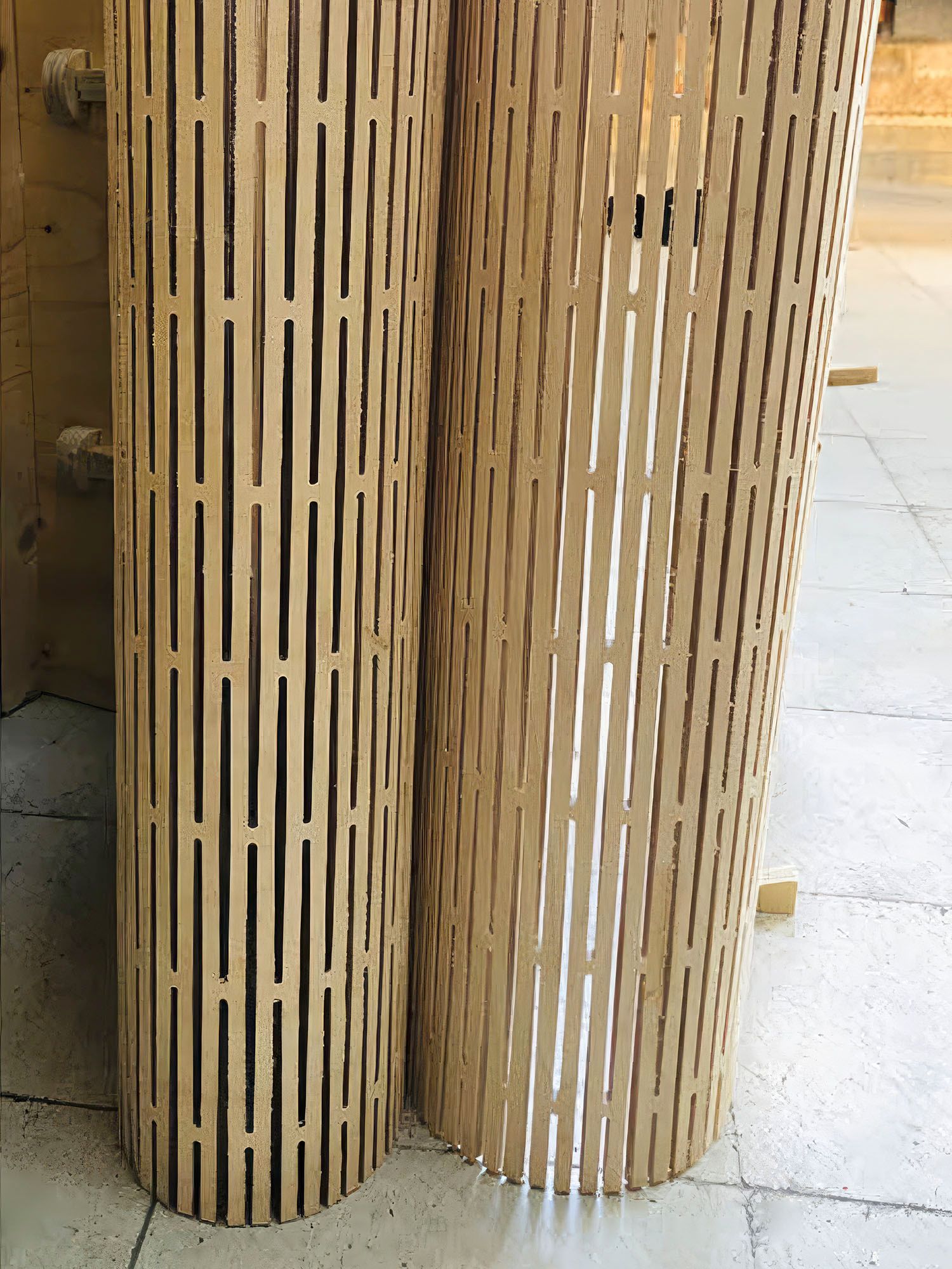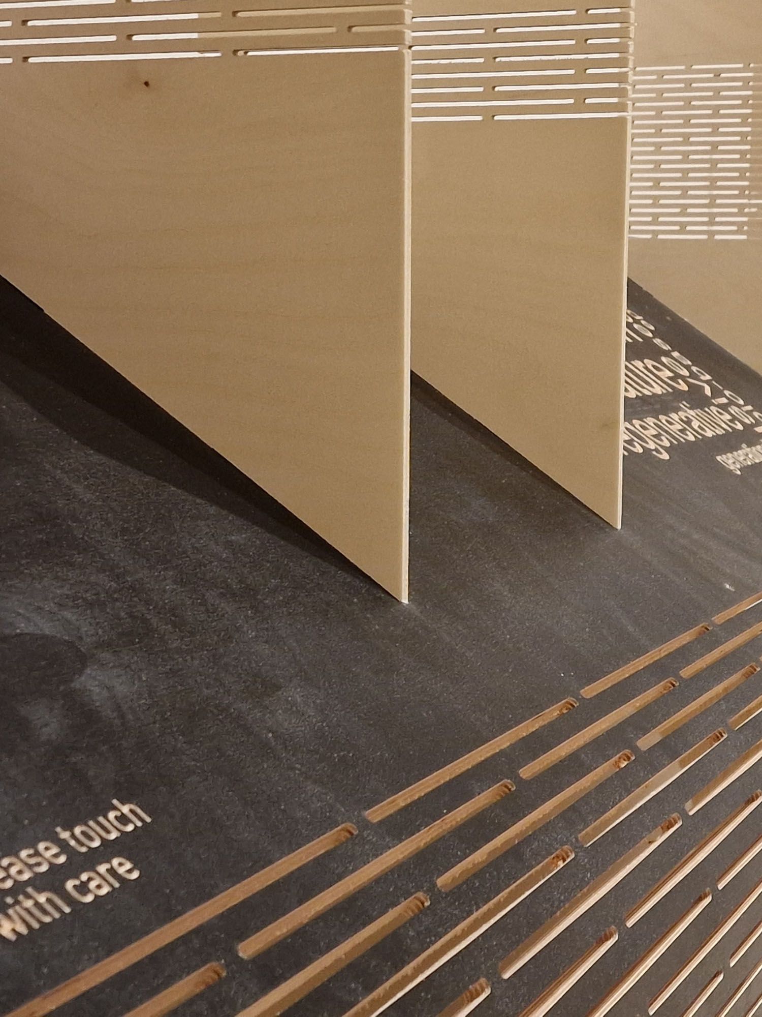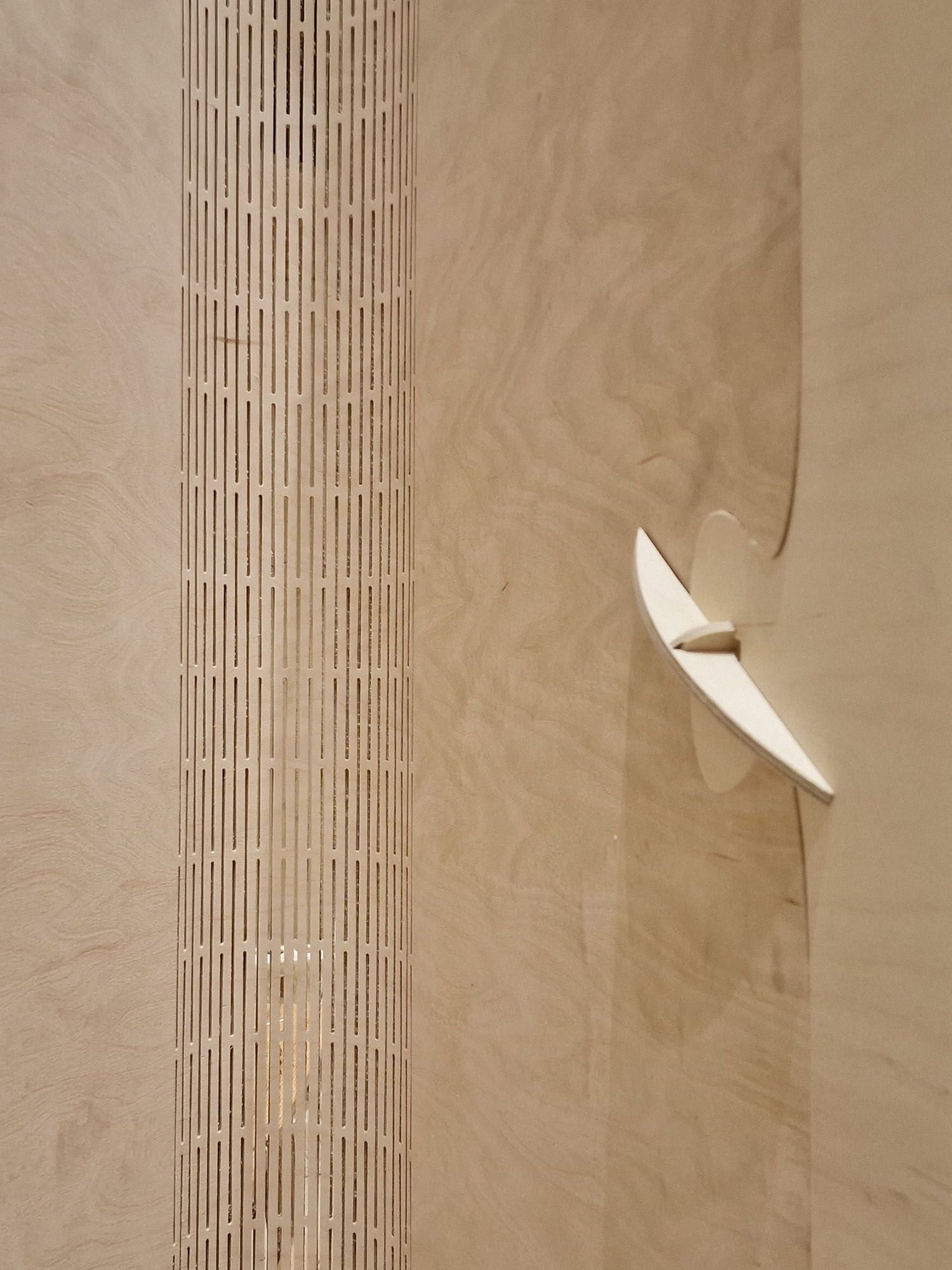 Unfolding (2021) and Ephemeral (2023) were exhibited at London Design Biennale in Somerset House. The installations explored the geometry and use of engineered timber partitions in residencies.