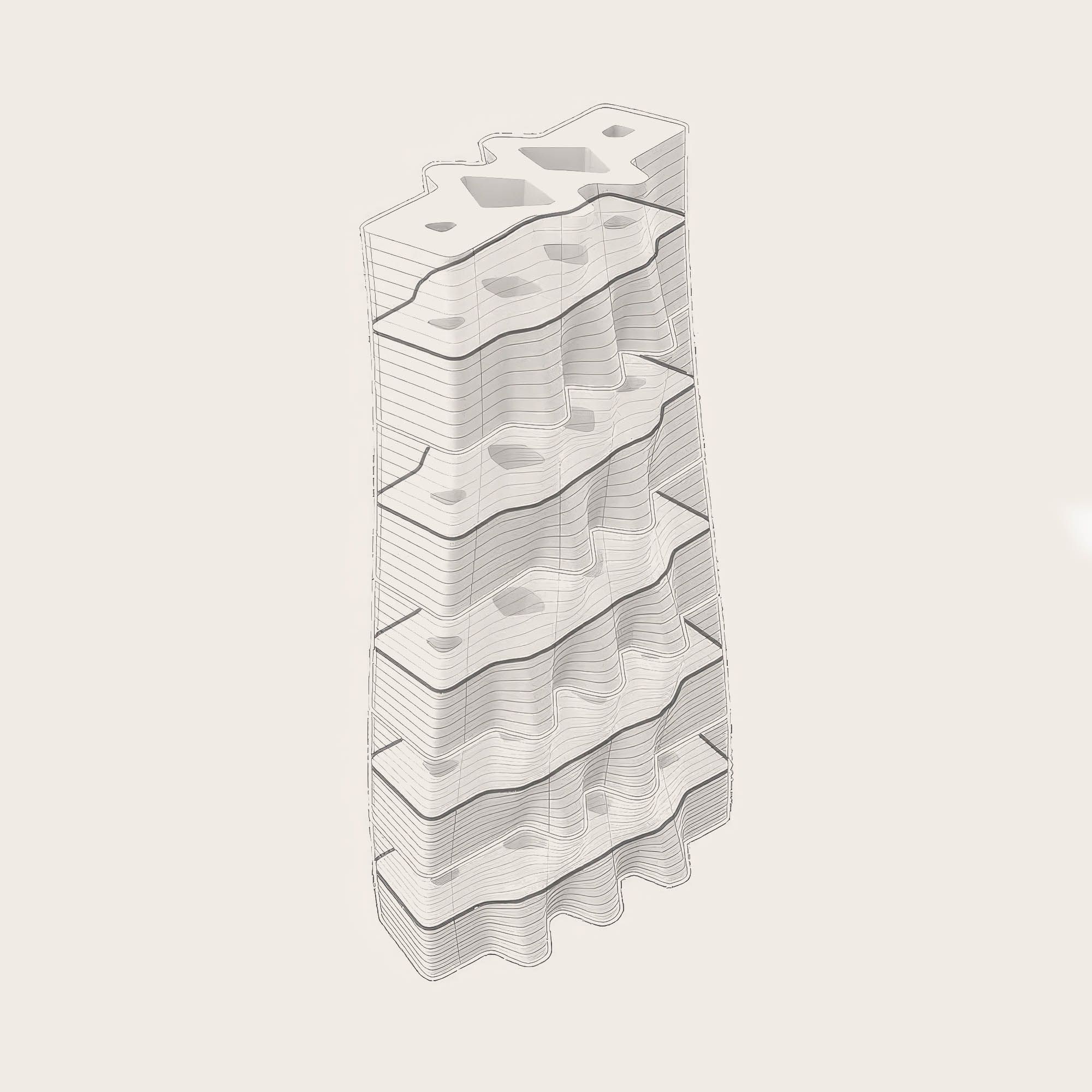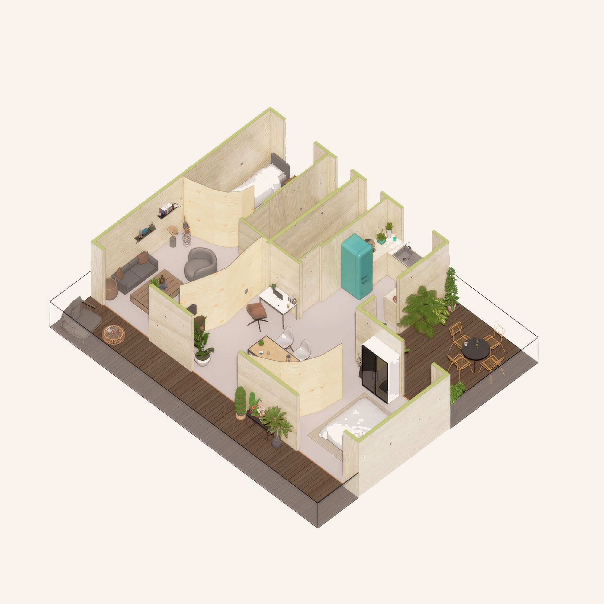 This model enables households to create a residential typology that works for them at every stage of life. This series of exhibits examines the evolving relationship between nature and city, natural materials and buildings, and a flexible, adaptable, and responsive future.