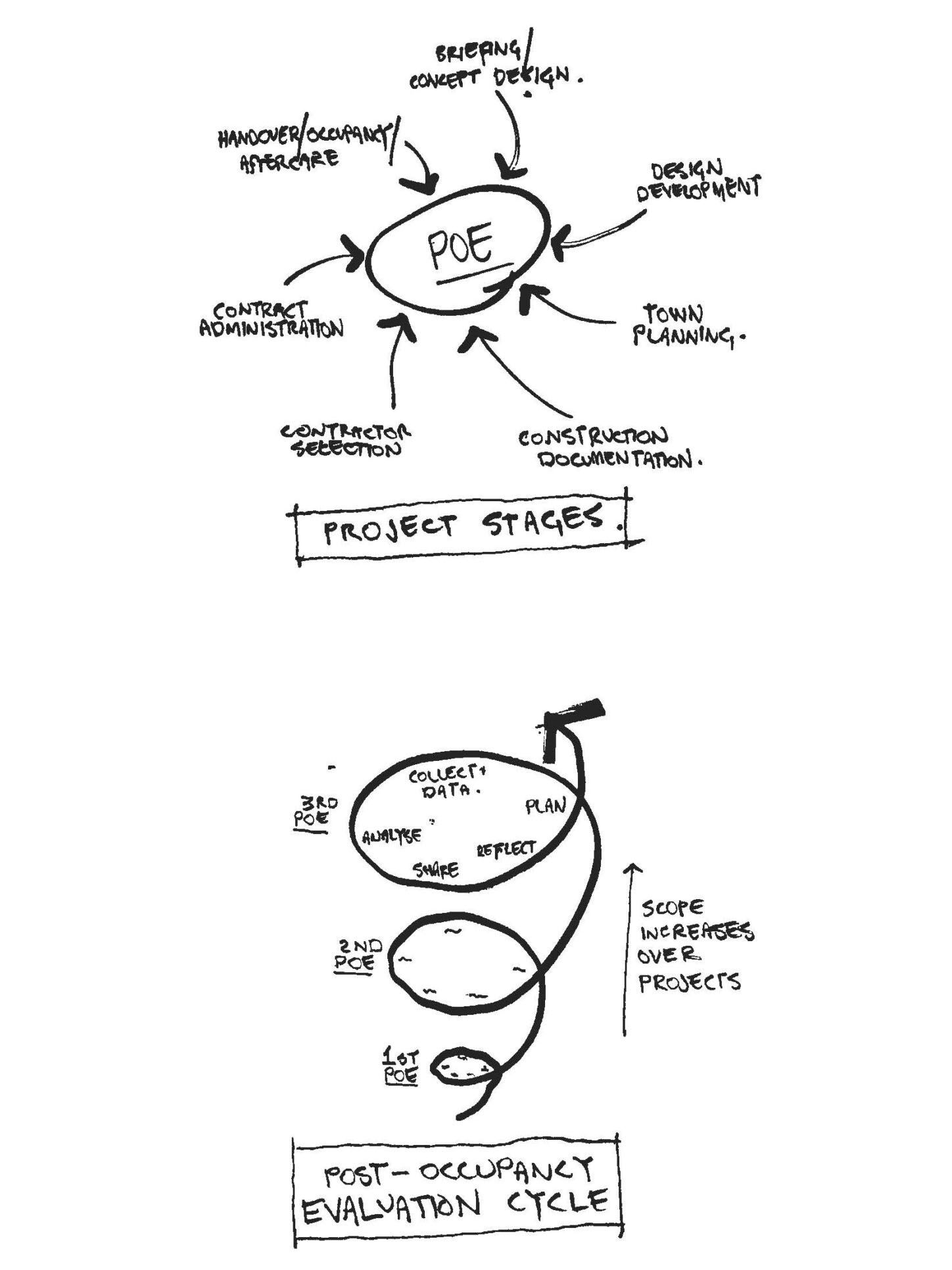 Diagram of the post-occupancy evaluation stages and cycles