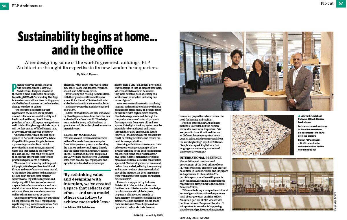 The article highlights how the fit-out reflects our core values as a practice, from circularity and long-term adaptability to wellbeing and collaboration. As Lee Polisano notes in the piece, “By rethinking value and designing with intention, we’ve created a space that reflects our ethos – and set a model others can follow to achieve more with less.”