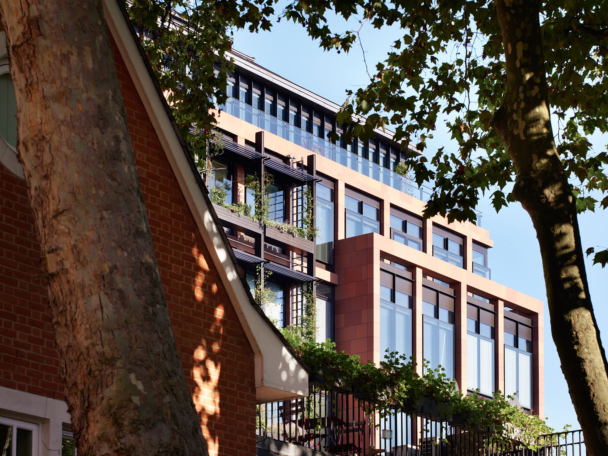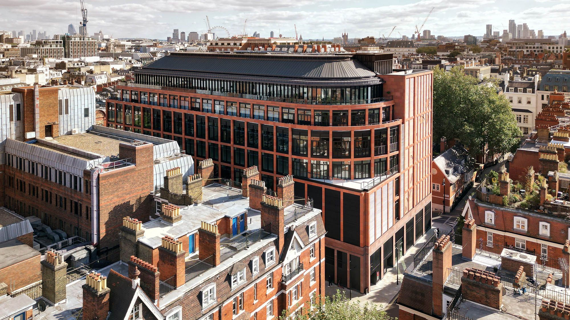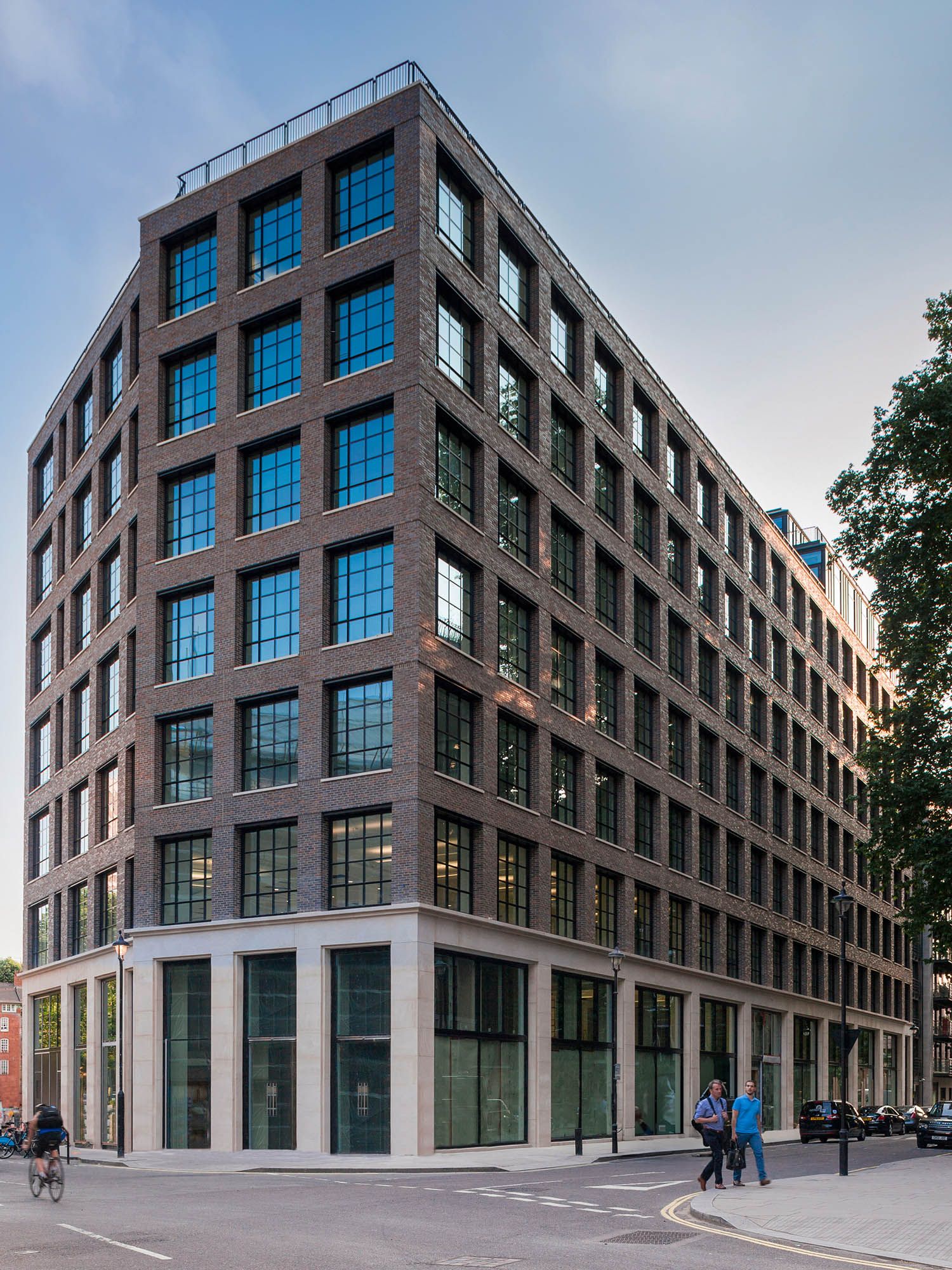 A retrofitted office building in Westminster designed for Burberry, where a new masonry façade draws on the brand’s British design heritage.