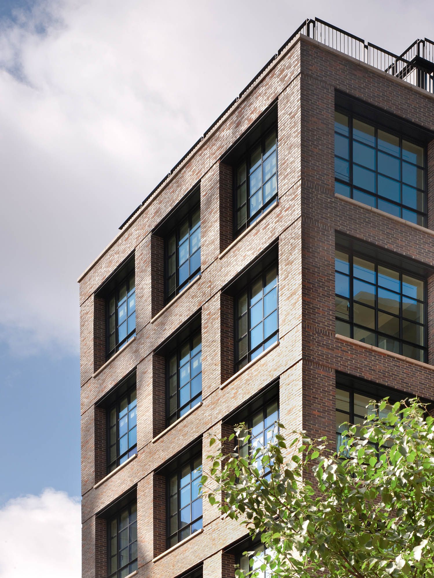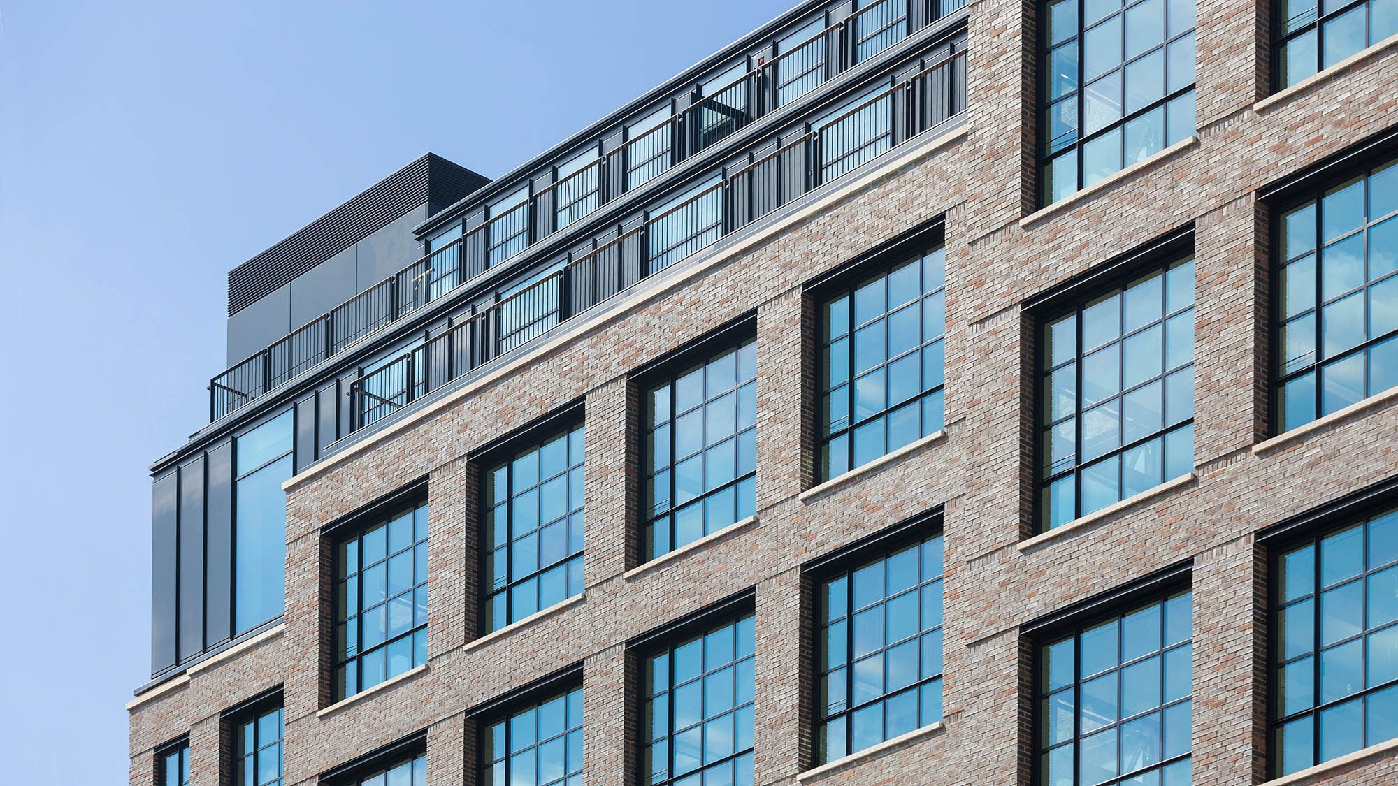 Opposite Burberry’s global headquarters at Horseferry House, the project strengthens the brand’s presence in Westminster with a workspace defined by craft, context and performance. The design weaves retained elements with new interventions, achieving significant time and carbon savings through adaptive reuse. The façade’s composition subtly echoes the geometry of the Burberry check, its proportions reinterpreting the brand’s sense of order and balance within a finely detailed masonry framework. Deep reveals and bronze-framed glazing add depth and material richness, repositioning the eleven-storey building within its historic setting and balancing modern precision with a distinctly British character.