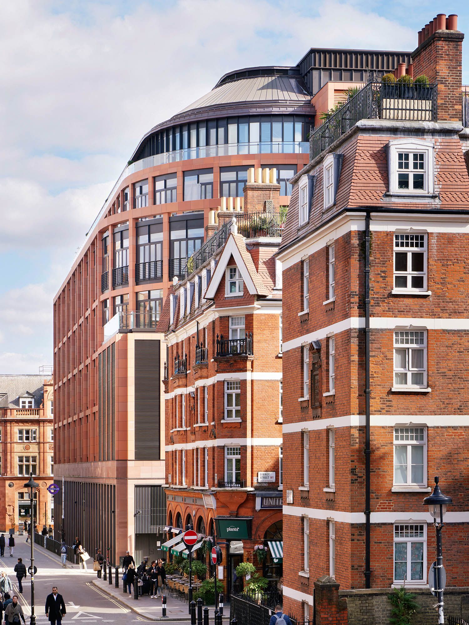 The building is also deeply informed by the heritage of Mayfair. Its palette of terracotta, stone and bronze responds to the surrounding townscape and the area’s tradition of crafted, durable façades. Terracotta references the clay beneath the site, while the detailing and material richness help create a building that feels both contemporary and grounded in its context.