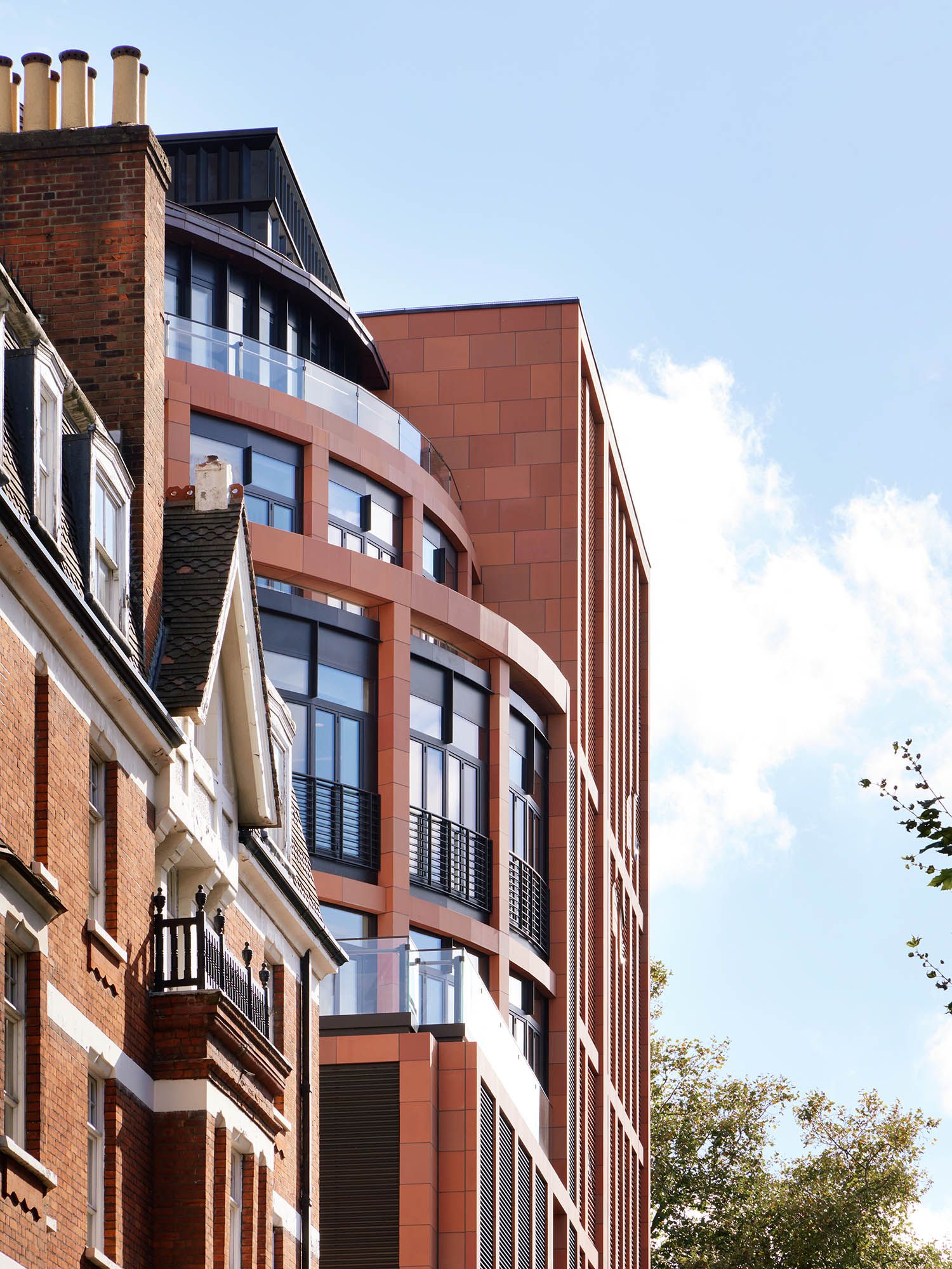 The façade responds to the material richness and scale of Mayfair through a palette of stone and terracotta, carefully detailed to echo the craftsmanship of the surrounding streets. This creates a building that feels both rooted in its context and distinctly contemporary.