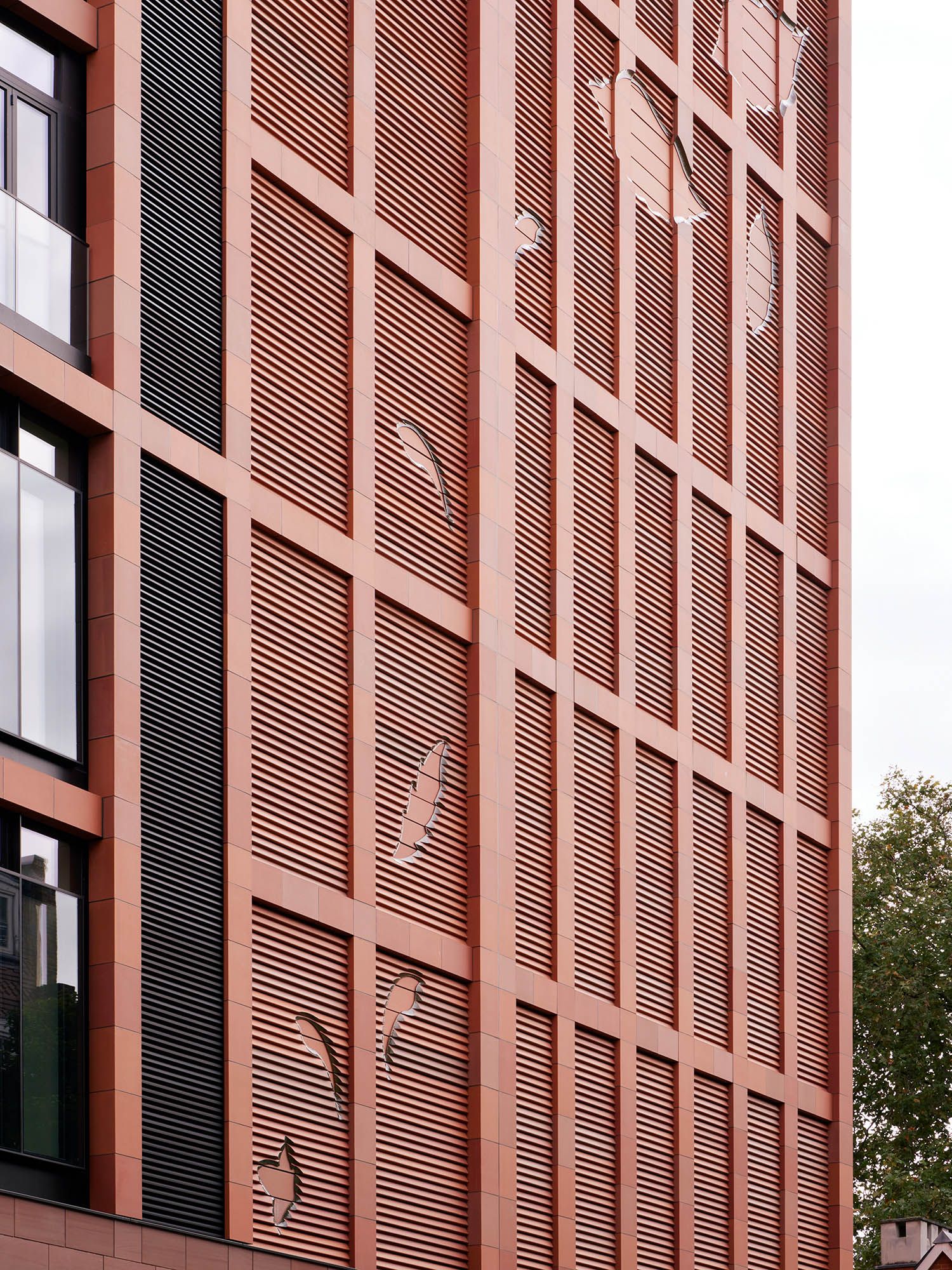 The façade brings together crafted stone, terracotta and integrated artwork to create a richly detailed architectural response shaped by the heritage and material character of Mayfair. These elements give the building a distinctive identity while allowing it to sit comfortably within its historic urban setting.
