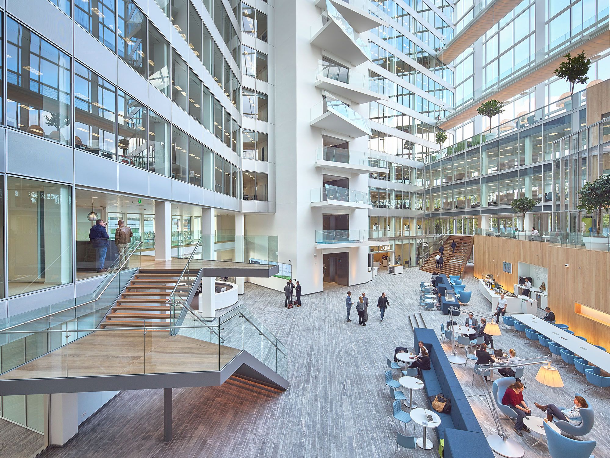 The arrival experience is conceived as an extension of the public realm, creating a more open and welcoming threshold into the building. It establishes a workplace environment shaped by light, movement and a stronger connection to the city.