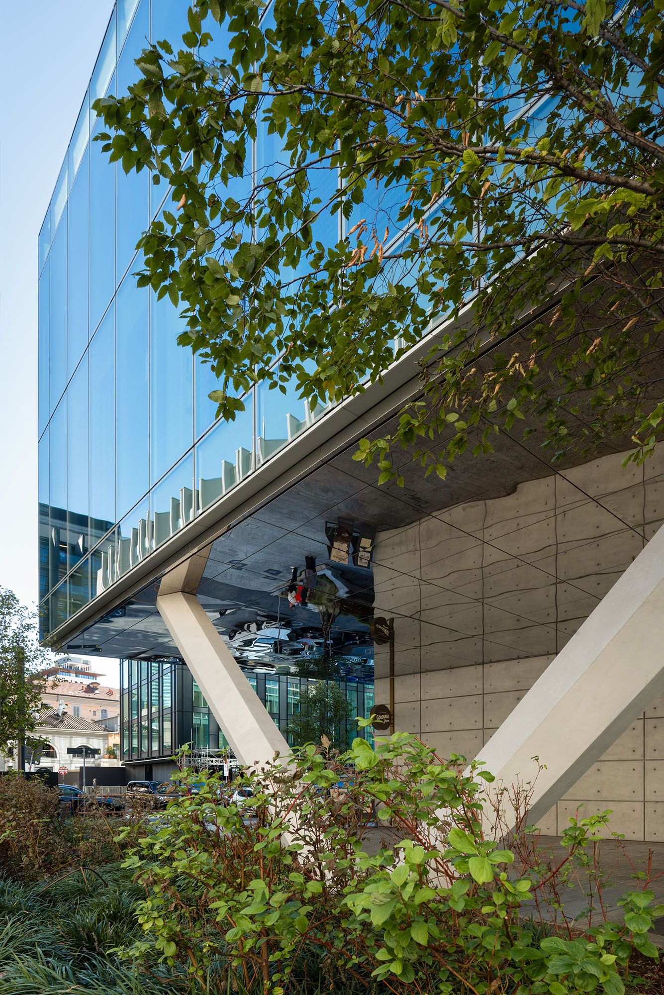 A newly landscaped public piazza connects the development to the wider district, stitching it into the urban fabric of Porta Nuova. Circulation routes guide people under cantilevers and through sunken courtyards, drawing on Milan’s rich tradition of urban discovery and supporting a new kind of permeability in the city.