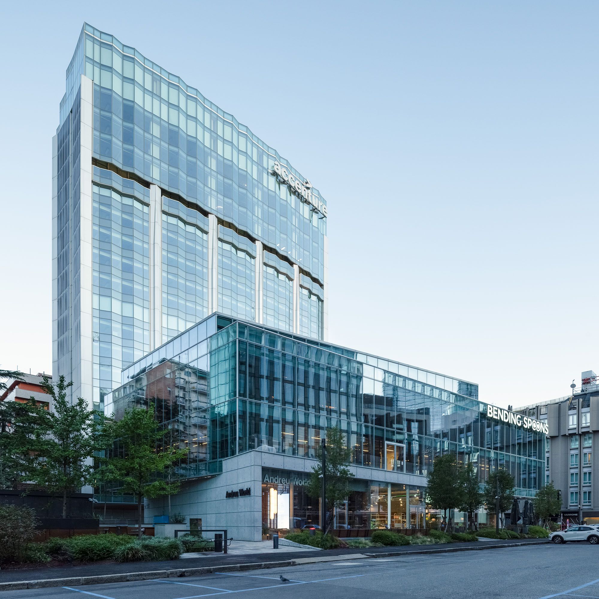 At the tower’s base, a new four-storey pavilion introduces 4,500m² of human-scaled workspace. Formed of a solid concrete base with lightweight steel-and-timber floorplates fanned above like a deck of cards, the pavilion culminates in a landscaped rooftop terrace. Semi-automatic timber shutters and tactile interior finishes create a calm, comfortable environment designed to support wellbeing and collaboration.