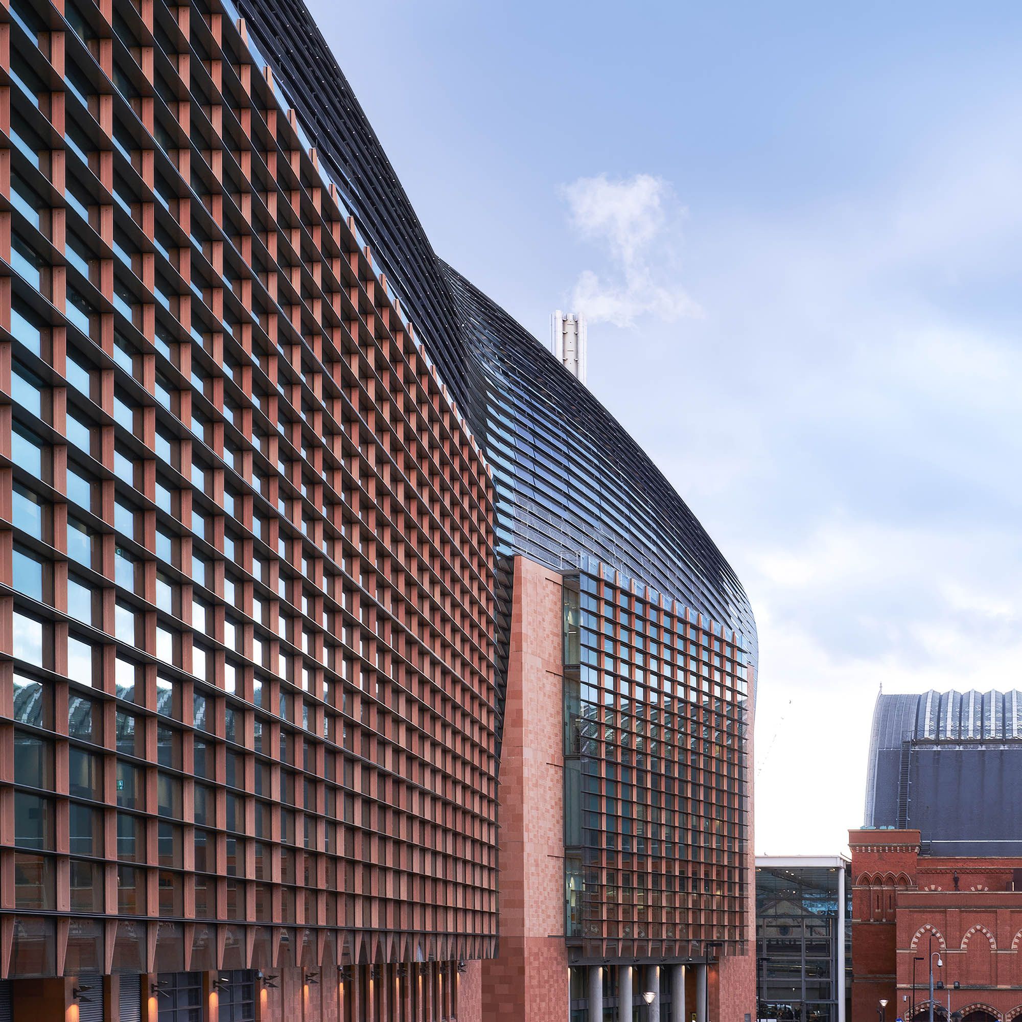 The building’s terracotta base establishes a strong relationship to its historic surroundings, while the roofline draws on the industrial character of nearby St Pancras. Together, these elements give the institute a civic presence within its prominent London setting.