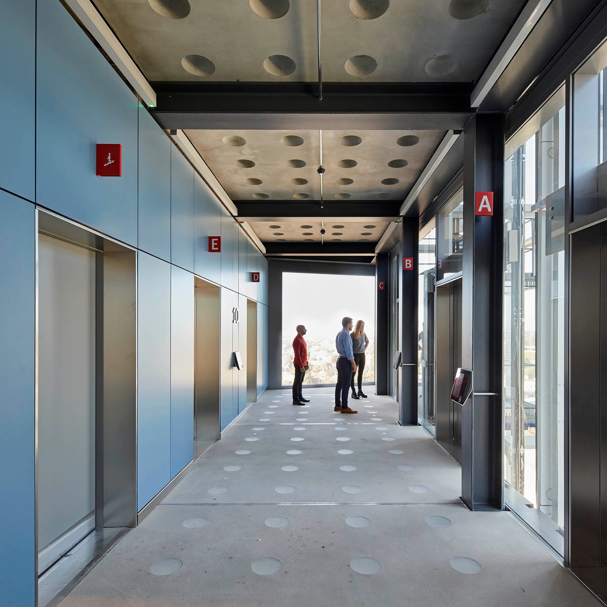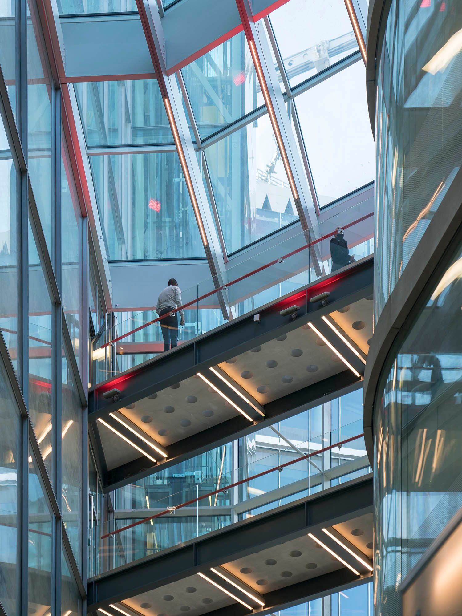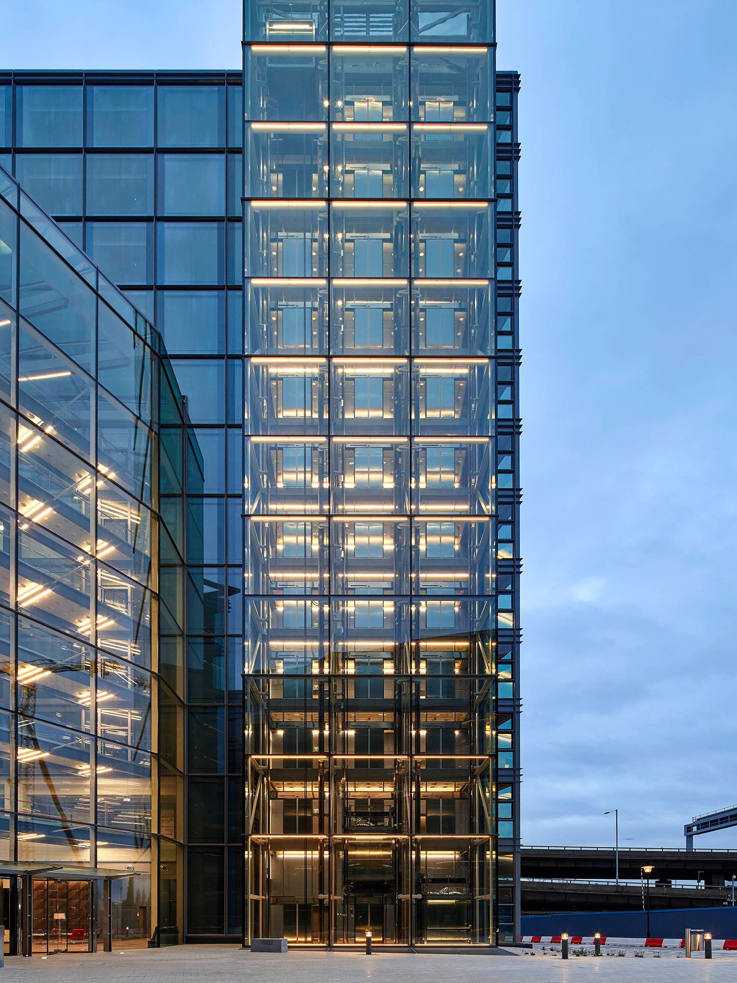 Organised into two wings of seven and twelve storeys, the building sits beside the Westway and acts as both a gateway and a buffer to the wider campus. A central atrium and open internal environments create visibility and connection across the building, while its position within White City helps strengthen links between academic research, business and the surrounding city.