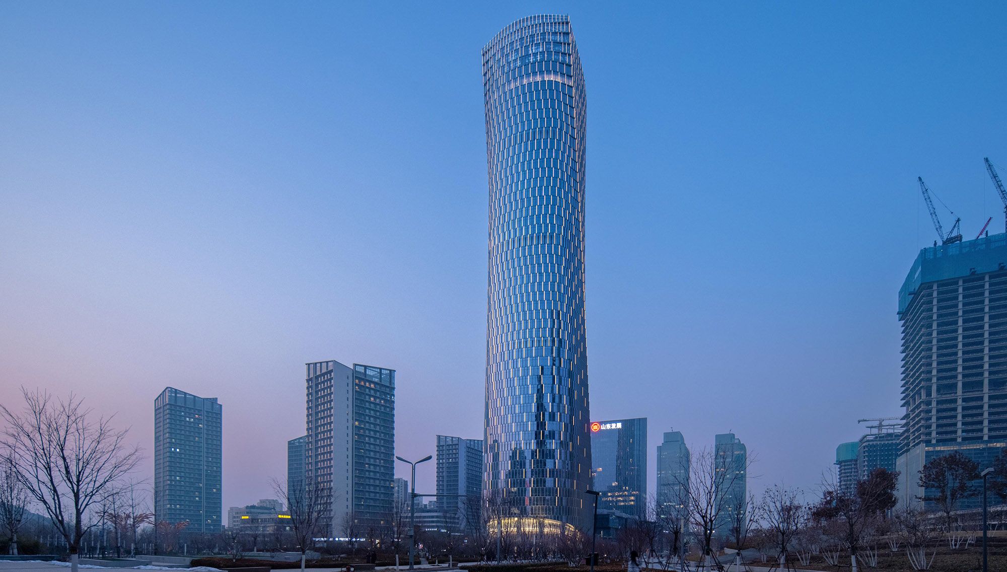 A mixed-use tower in Jinan designed as a high-performance workplace and a distinct presence within the city skyline.