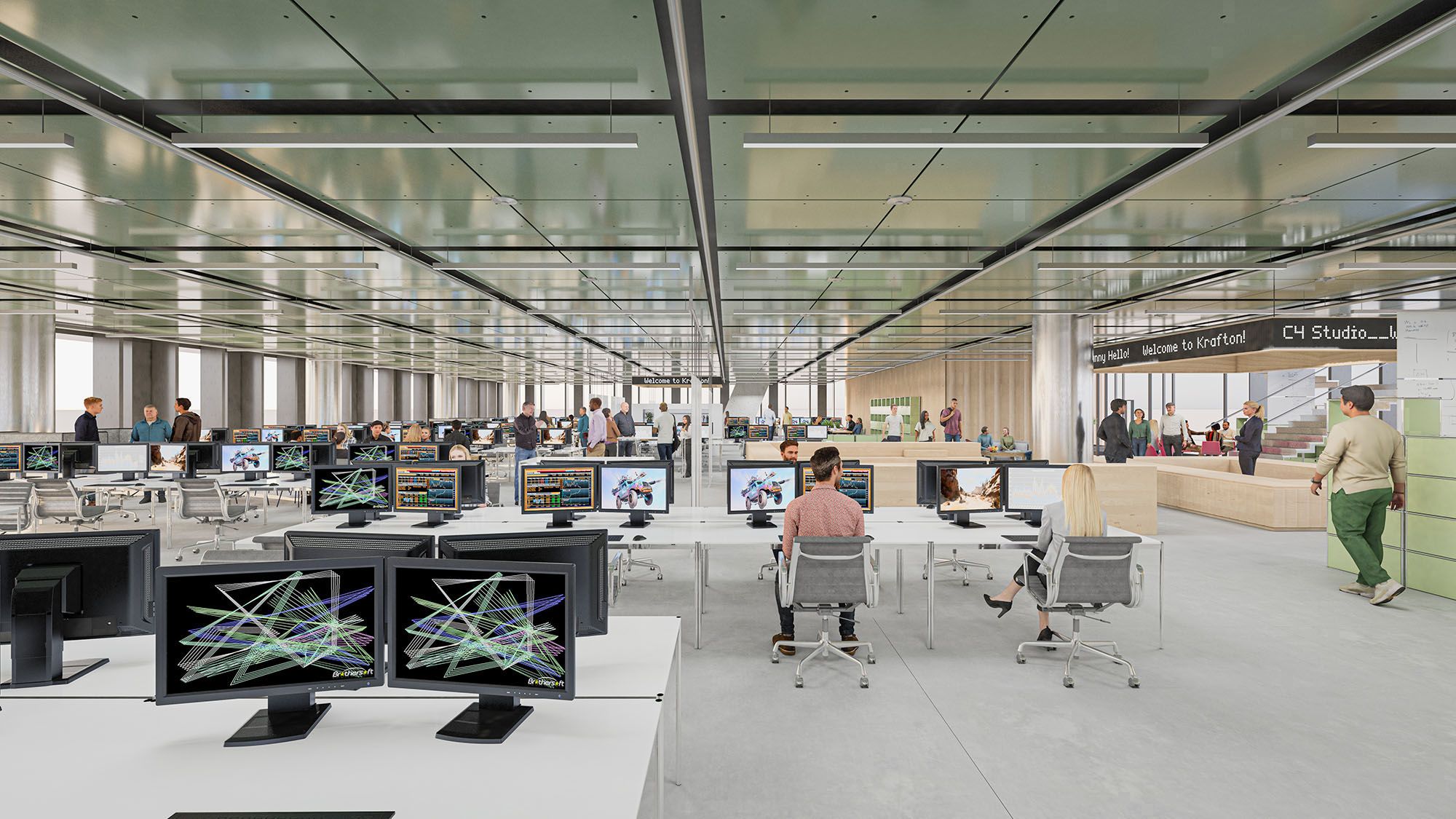 Designed for flexibility and longevity, Krafton C4 integrates passive daylighting, natural ventilation, photovoltaic panels and a high-performance closed-cavity façade to support environmental performance. Green terraces and rooftop sports facilities further enhance wellbeing and social interaction, helping to shape a workplace that blends creativity, nature and civic life into a single evolving environment.