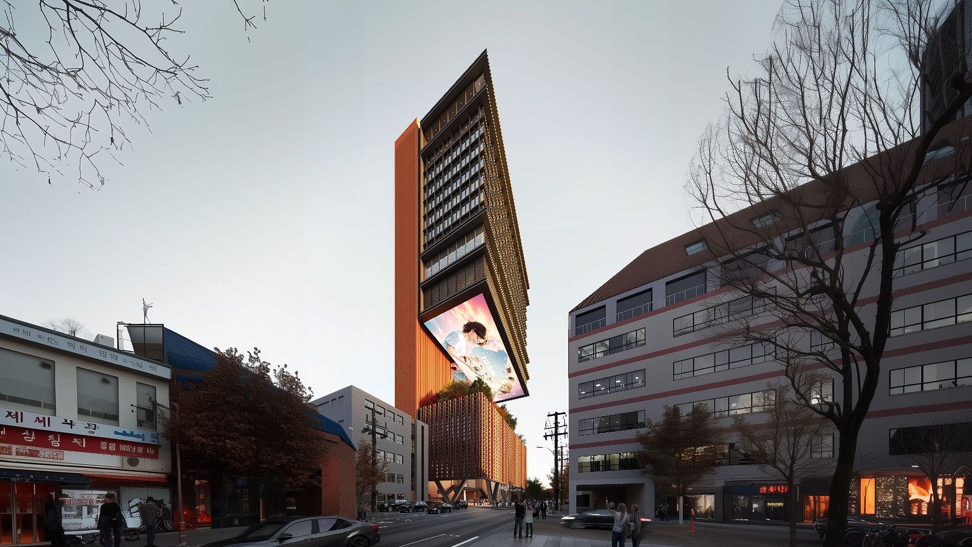 Krafton C4 is conceived as more than a headquarters. Designed for the Korean gaming company Krafton, the tower is imagined as a vertical campus that brings together developers, fans and the wider public within a single creative workplace. Located in Seongsu, the project draws on the district’s industrial character and evolving cultural identity to create a building that is both rooted in place and forward-looking in expression.