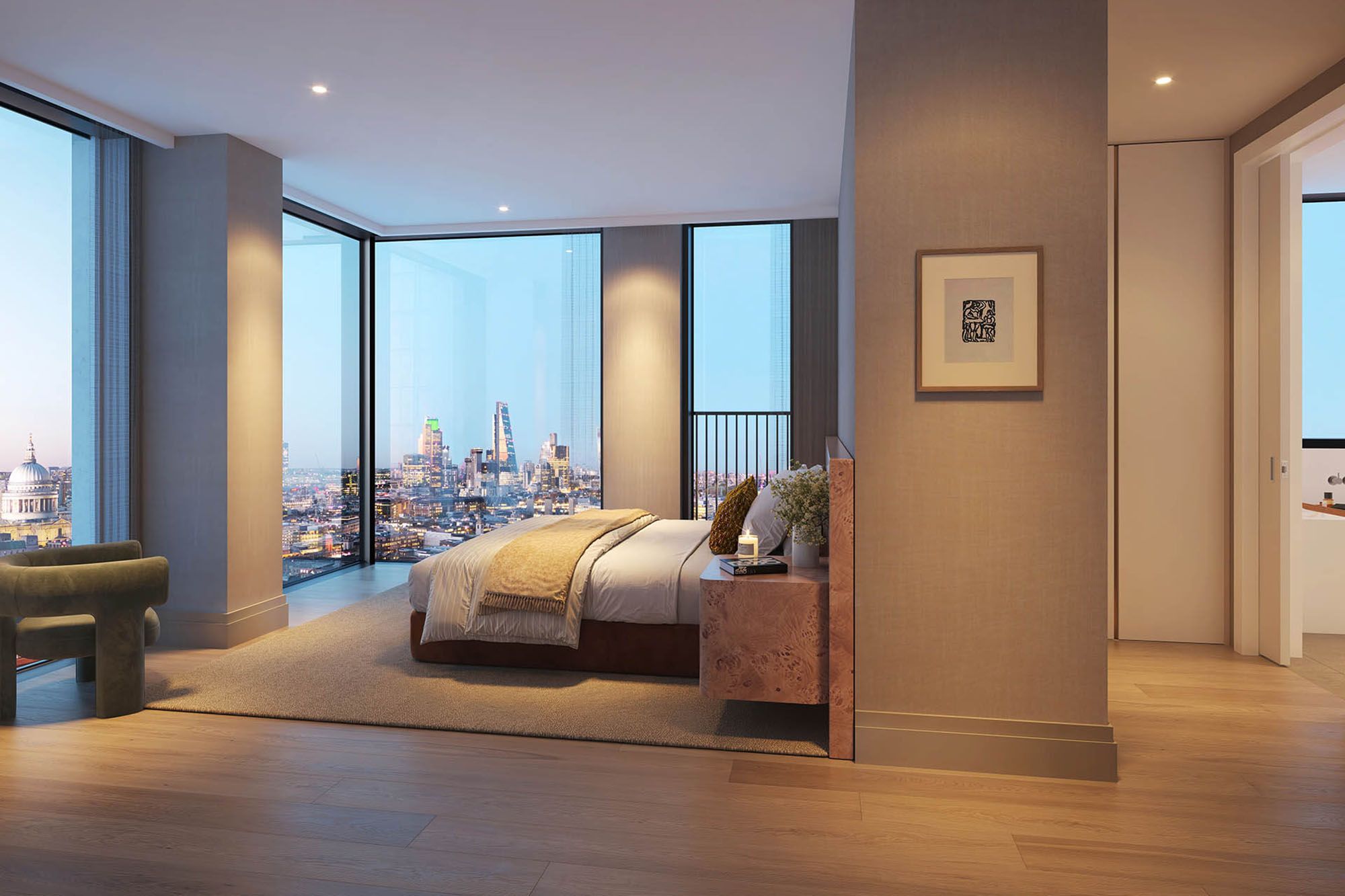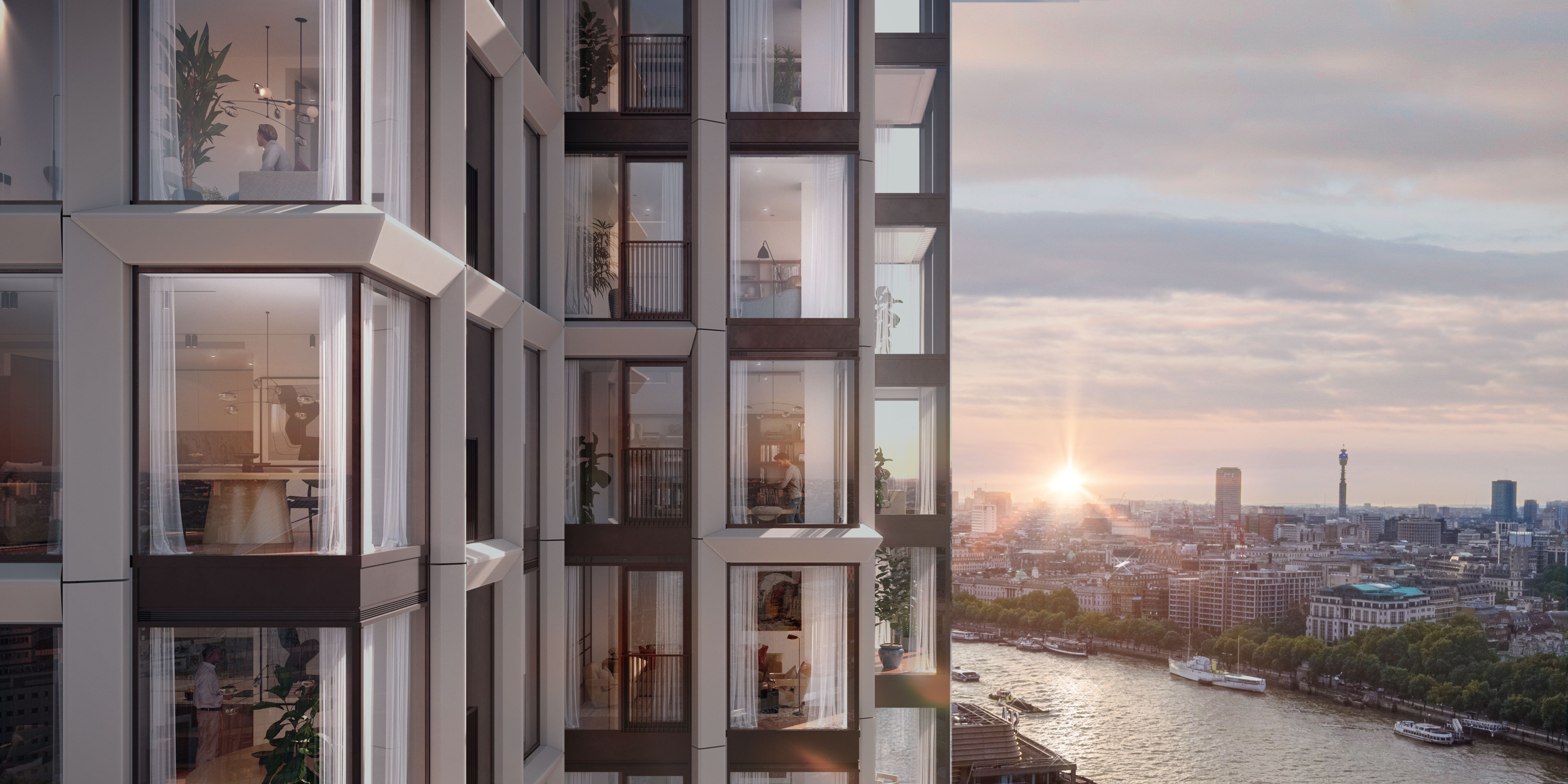 Rising above the River Thames, Opus is shaped by its exceptional position between the city, the river and London’s cultural core. The homes are designed to maximise light, outlook and a strong connection to the wider urban landscape.