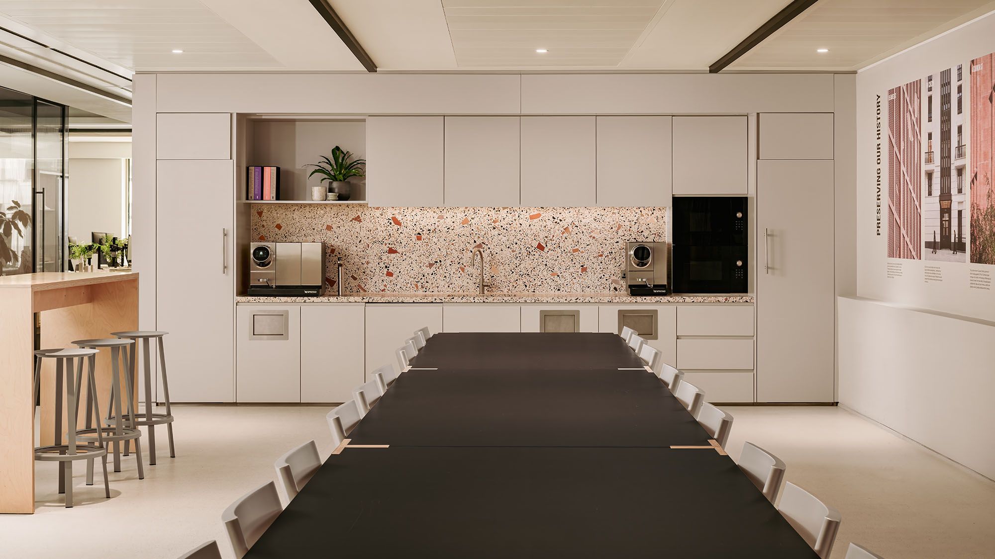 And this was delivered for just £64 per square foot, 68% less than the cost of a typical London fit-out. Highlights include terrazzo worktops embedded with architectural samples, repurposed marble transformed into new tables, and furniture either restored or rehomed. The result is a vibrant, low-impact, and deeply intentional space. One that reflects PLP’s belief in architecture’s power to drive positive change.