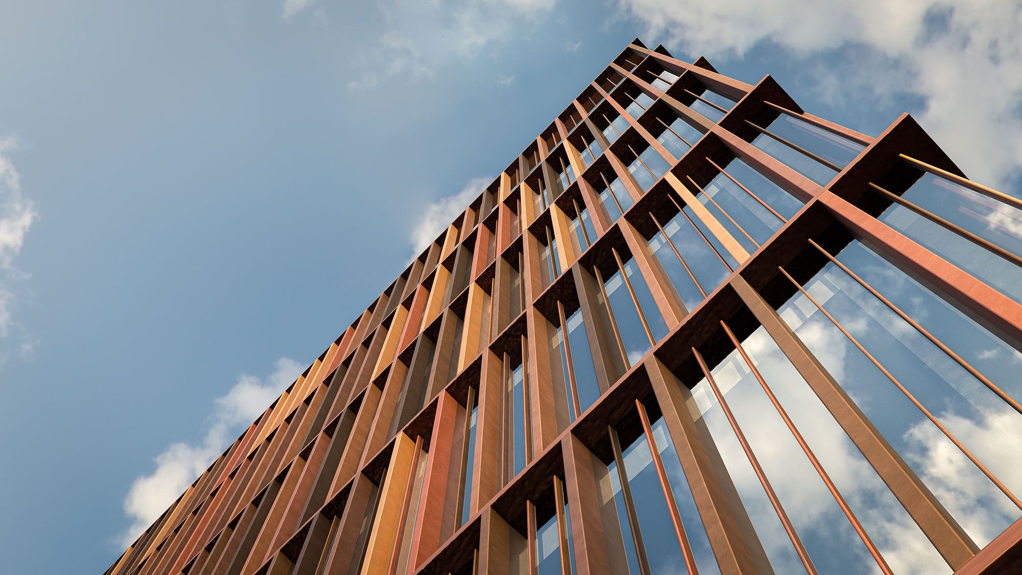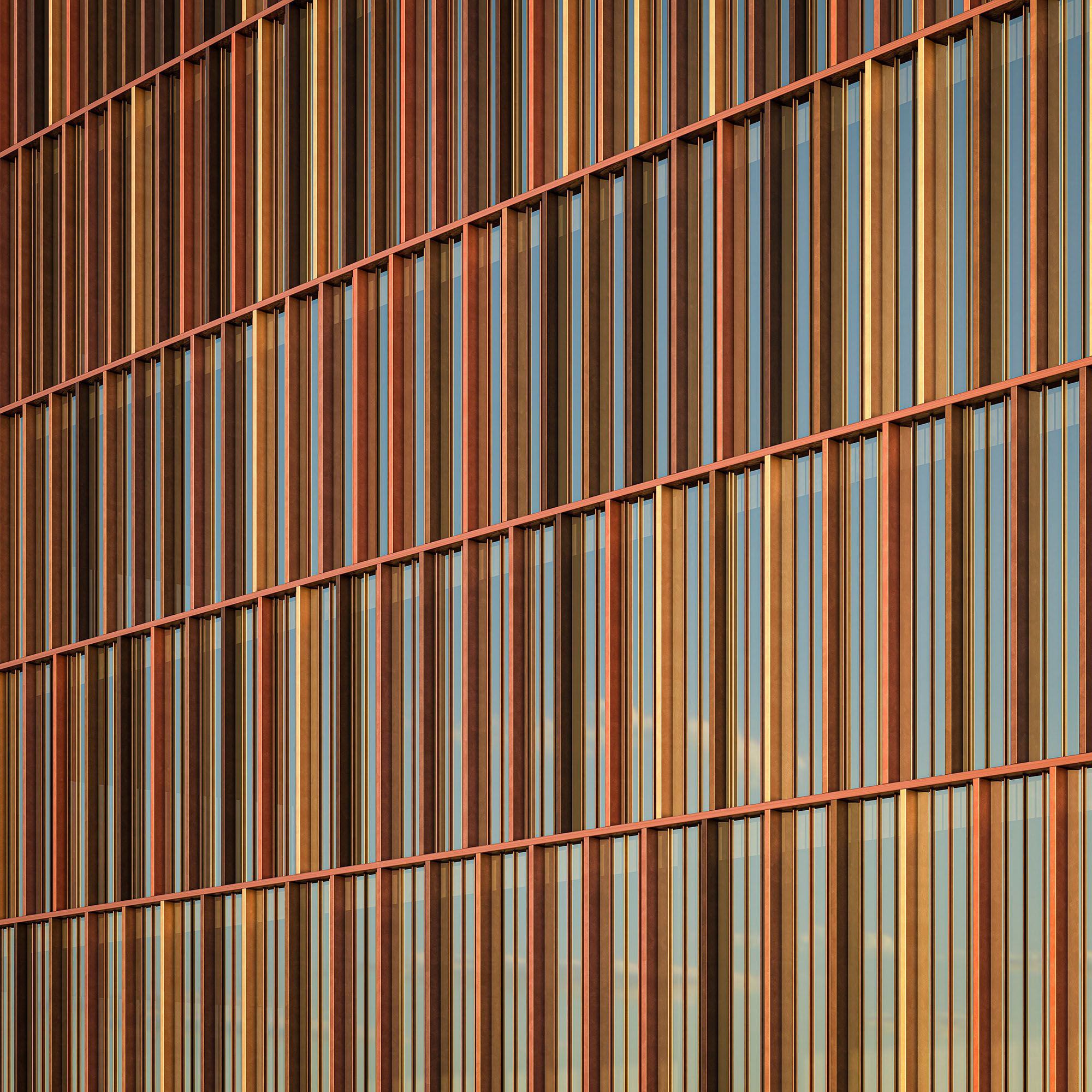 The architecture strengthens the district’s evolving character. A glass block base creates a permeable and welcoming street presence while buffering sound from the elevated rail line. Above, bronze and copper tones reinterpret Seong Su’s distinctive red-brick landscape in a contemporary way.