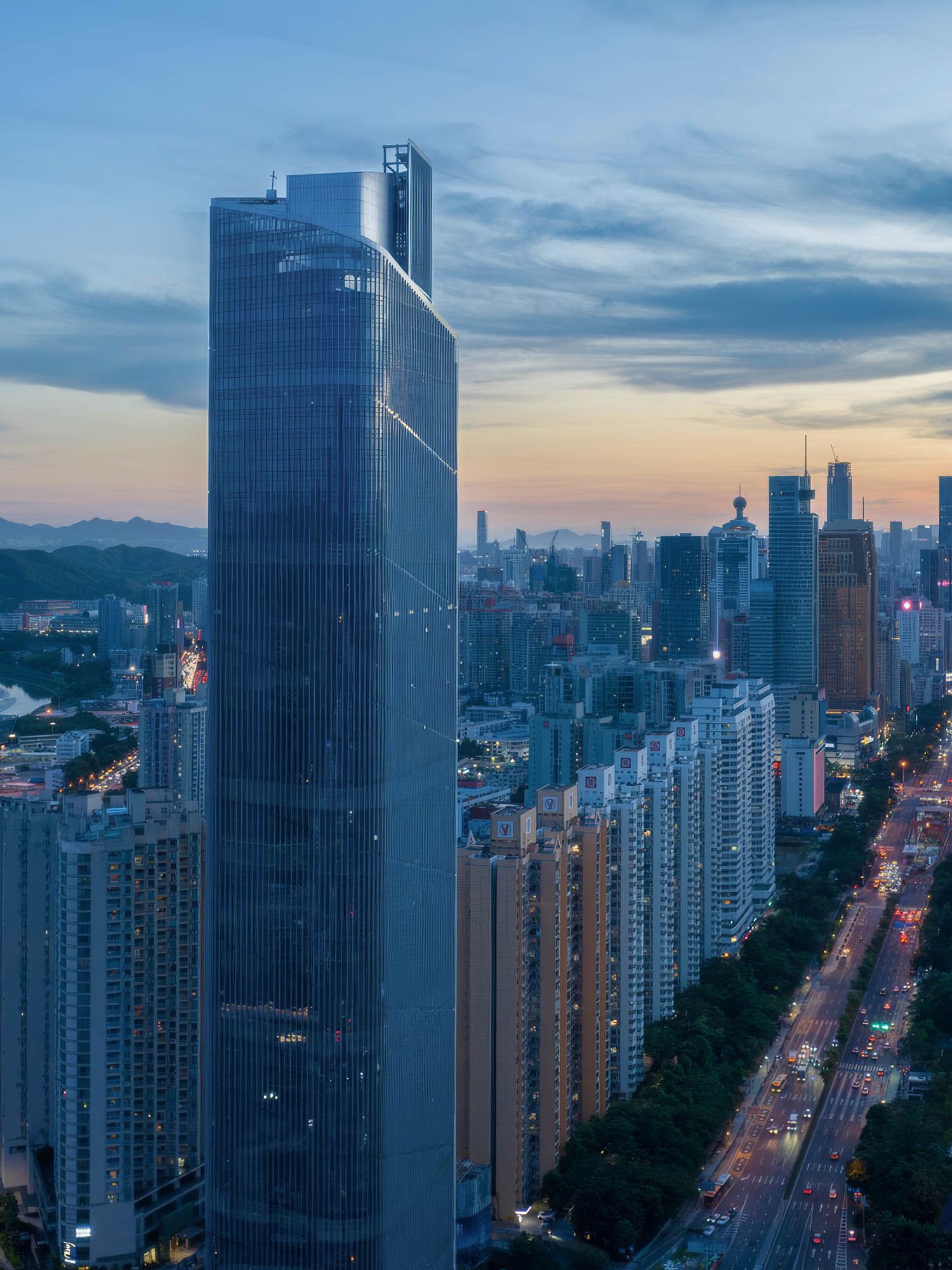 A mixed-use tower in Shenzhen designed to mark the eastern gateway of Shennan Avenue.