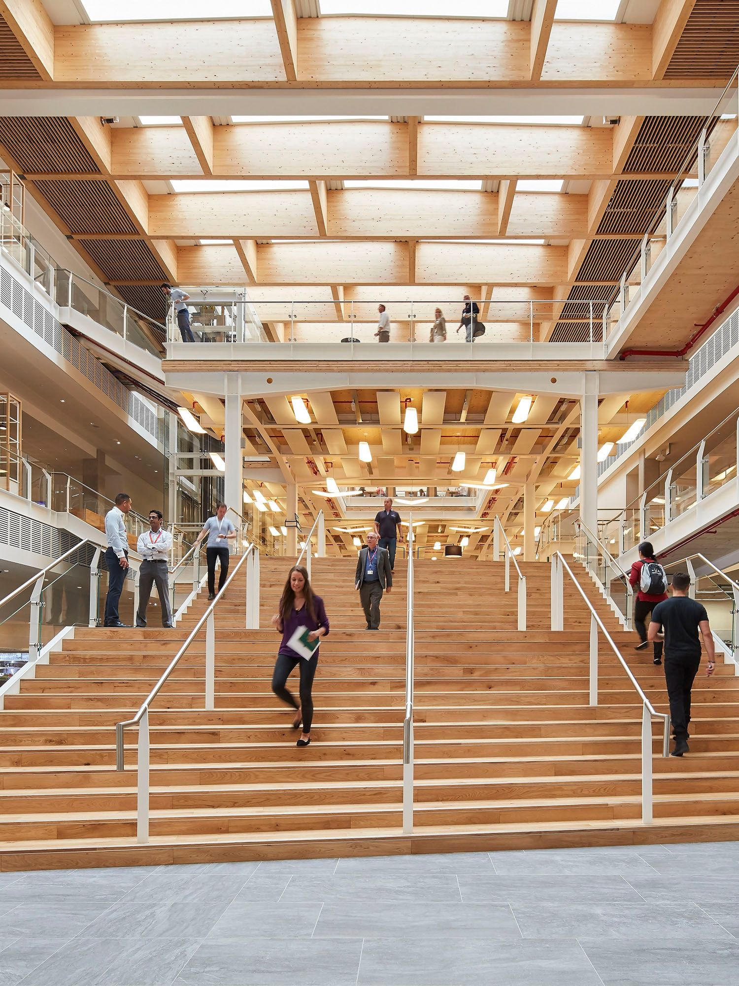 Despite its scale, the building is organised into a series of distinct neighbourhoods that help to humanise the workplace and support different modes of use. Large, naturally lit floorplates are paired with flexible and efficient planning, allowing the building to respond to changing patterns of work over time while maintaining a strong sense of openness and community.