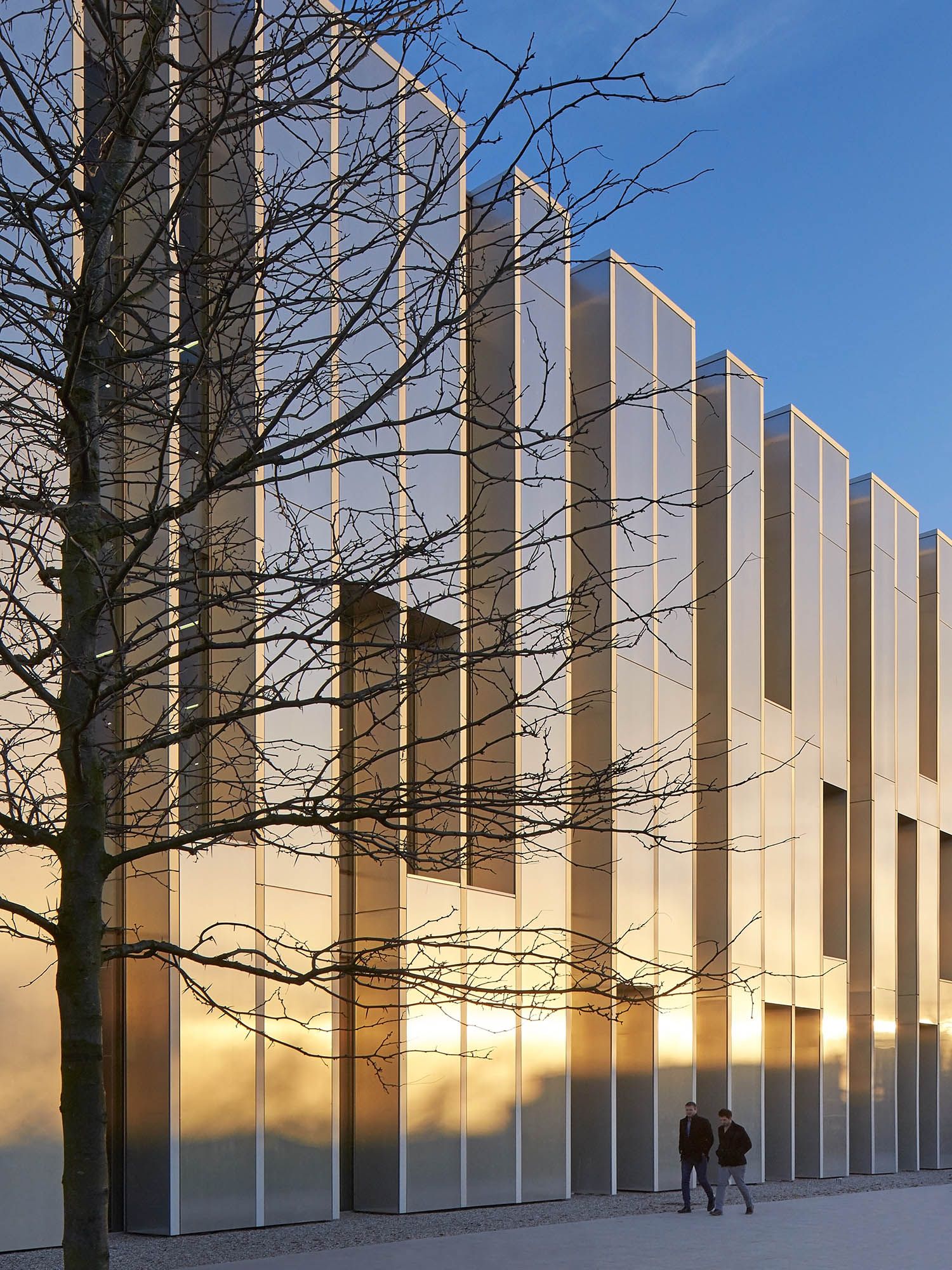 At the heart of the building, a central atrium and elevated live broadcast studio establish a strong internal focus, while a long internal street connects the main entrances and acts as the social and spatial spine of the workplace. Along this route, a series of workspaces, dining areas, informal meeting spaces, a cinema and support facilities create an environment designed to encourage movement, interaction and encounter across the organisation.