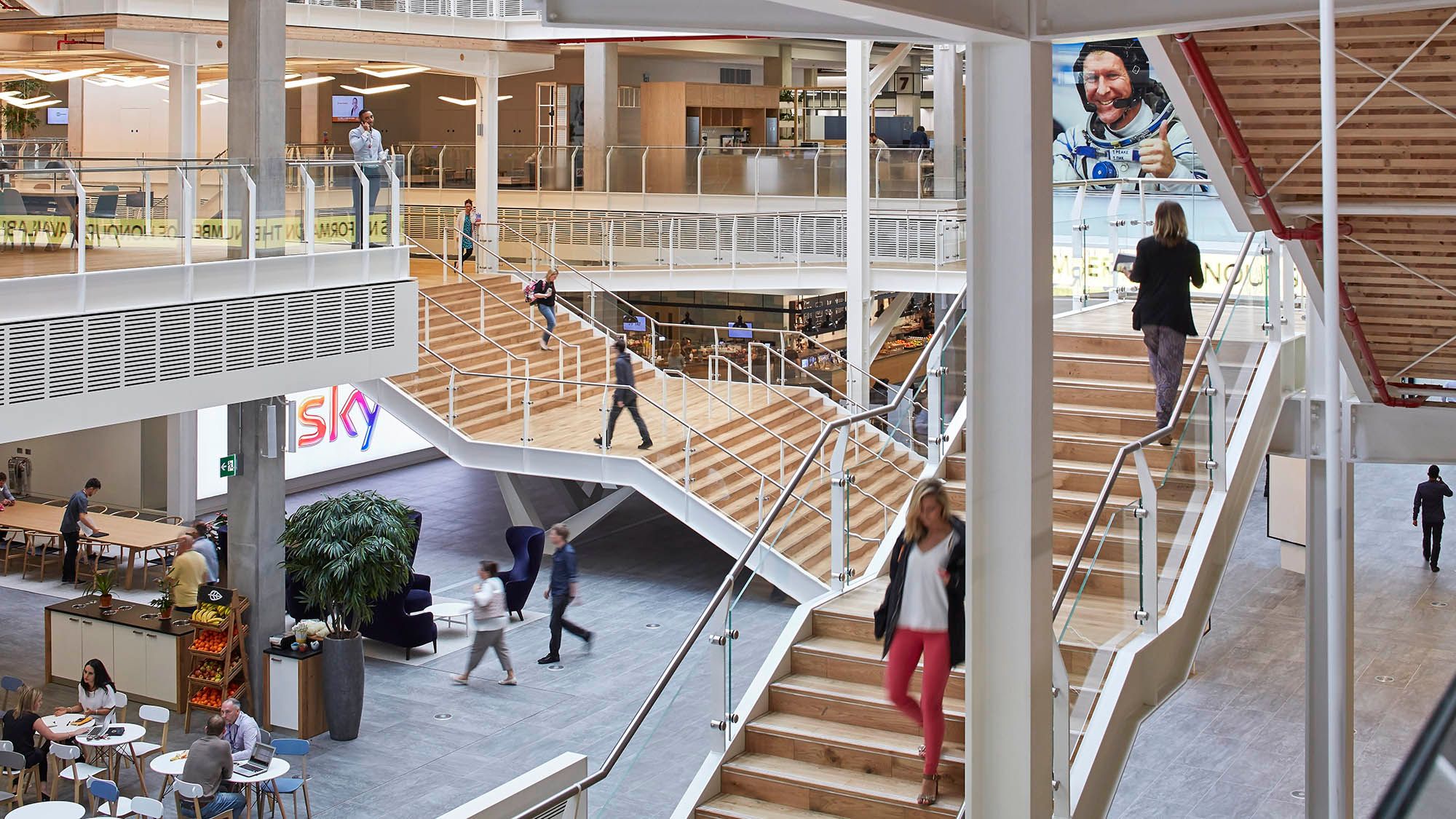 A headquarters workplace in London designed for Sky, bringing 3,500 employees together through flexibility, collaboration and shared experience.