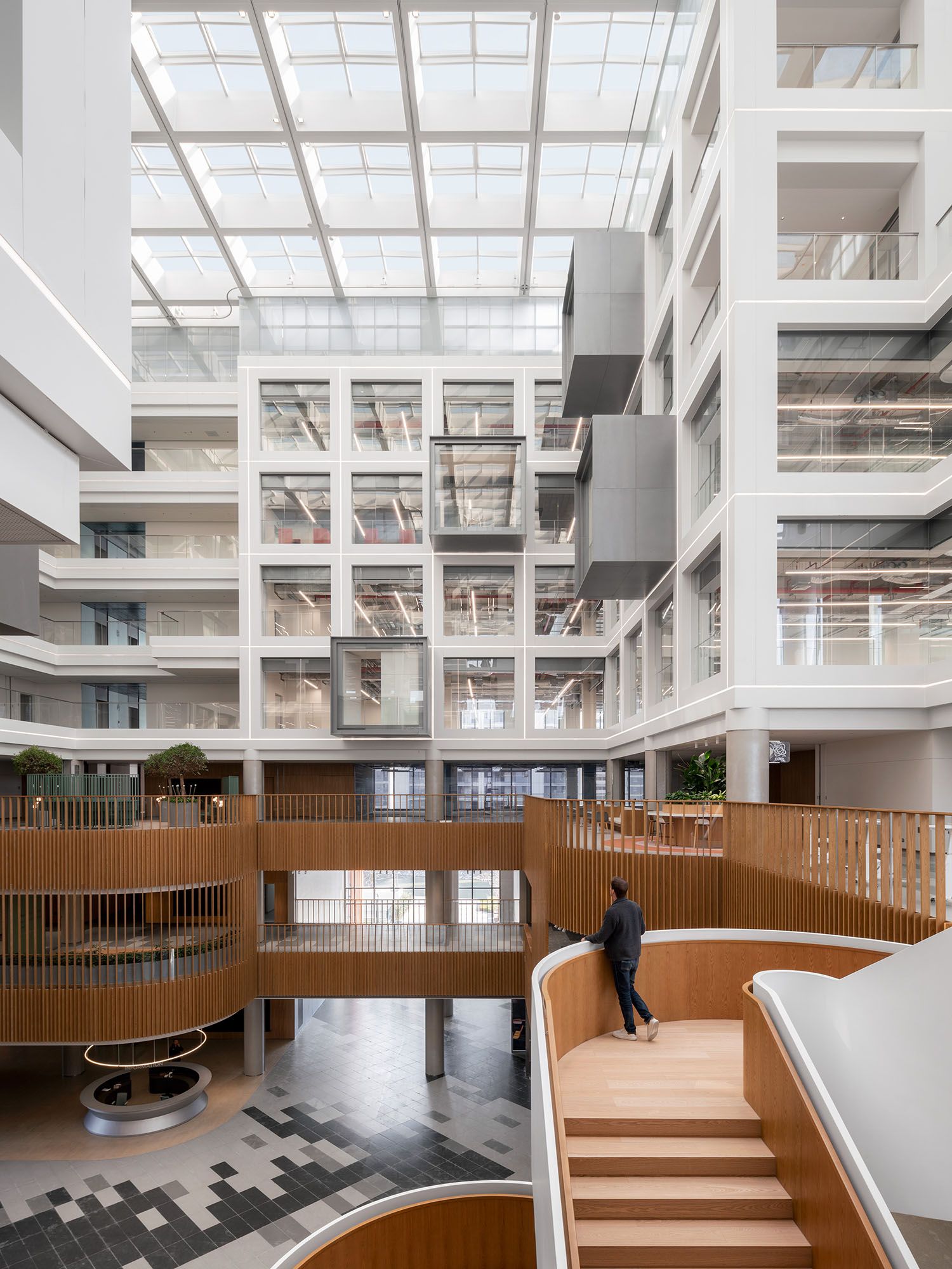 “The atrium is conceived as the social heart of the building, where researchers, ideas and disciplines can meet in an open and connected environment.”